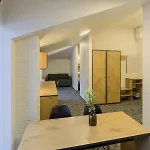 Номери облаштовані сервантом. Крім того, в них є гардероб. У них є ванні кімнати з окремим туалетом і душем, а також феном і банними рушниками.